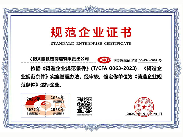 • 09-28弋陽大鵬機械制造有限責任公司成功取得規(guī)范